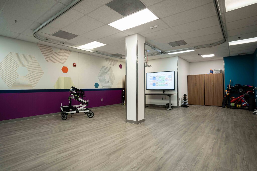 Therapy also includes the utilization of state-of-the-art technology. Age-appropriate activities and equipment are available for young children and teens, along with access to advanced technology in the Brooks Neuro Recovery Center (NRC).